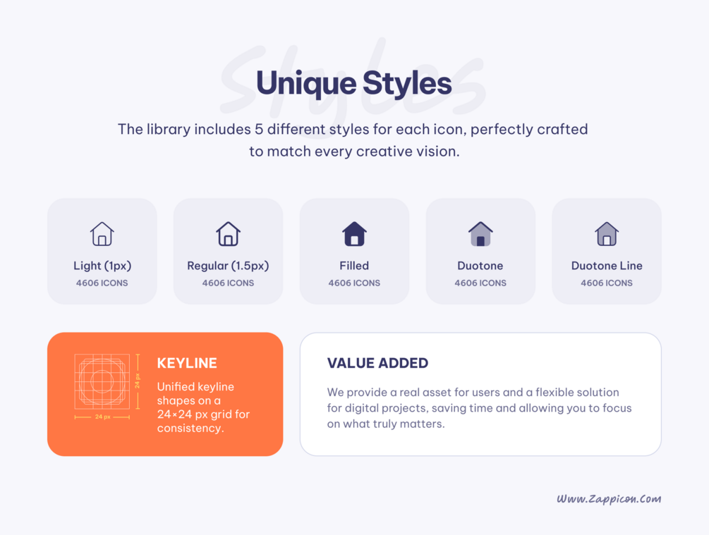 Zappicon is a clean, consistent UI icon library featuring over 23,000 icons, crafted to simplify workflows for designers, developers and creators.